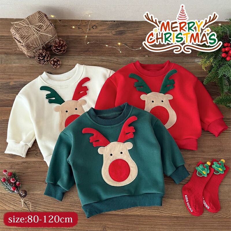 クリスマス 長袖 トレーナー キッズ トナカイ 衣装 スウェット パーカー 新生児 女の子 男の子 ベビー服 子供服 秋冬 寒さ対策 パーティー 可愛くインスタ映え コスチューム トップス 記念写真